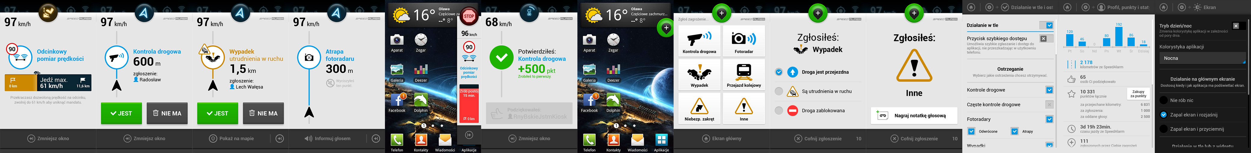 SpeedAlarm application is using GPS and mobile data to connect drivers in Poland. User seeing a difficulty on a road can report it with a touch of two buttons. The message will reach all other users on the same route.